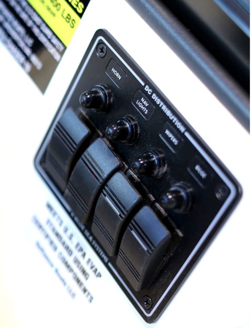 Alvöru rofaborð, IP66, svart með 4 Carling on/off rofum, LED og 15A álagsöryggi