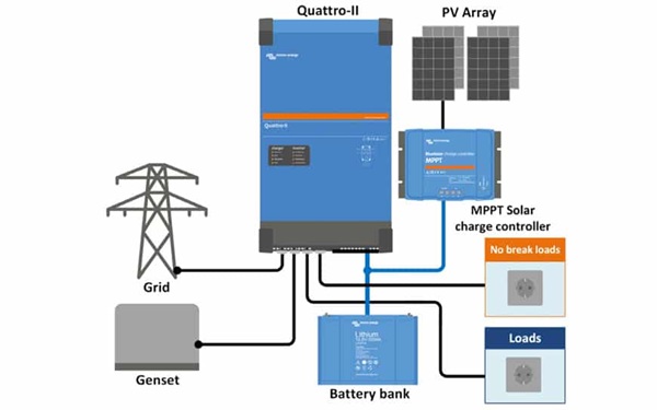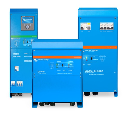 Áriðlar eins og MultiPlus, Quattro eða Easy Solar frá Victron Energy eru sniðnir fyrir þessa notkun.