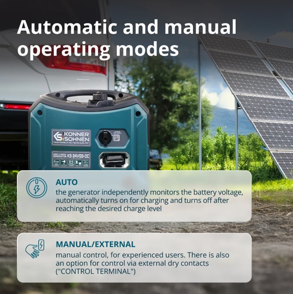 Rafstöð sérhönnuð til þess að hlaða og viðhalda 24V rafgeymasettum.